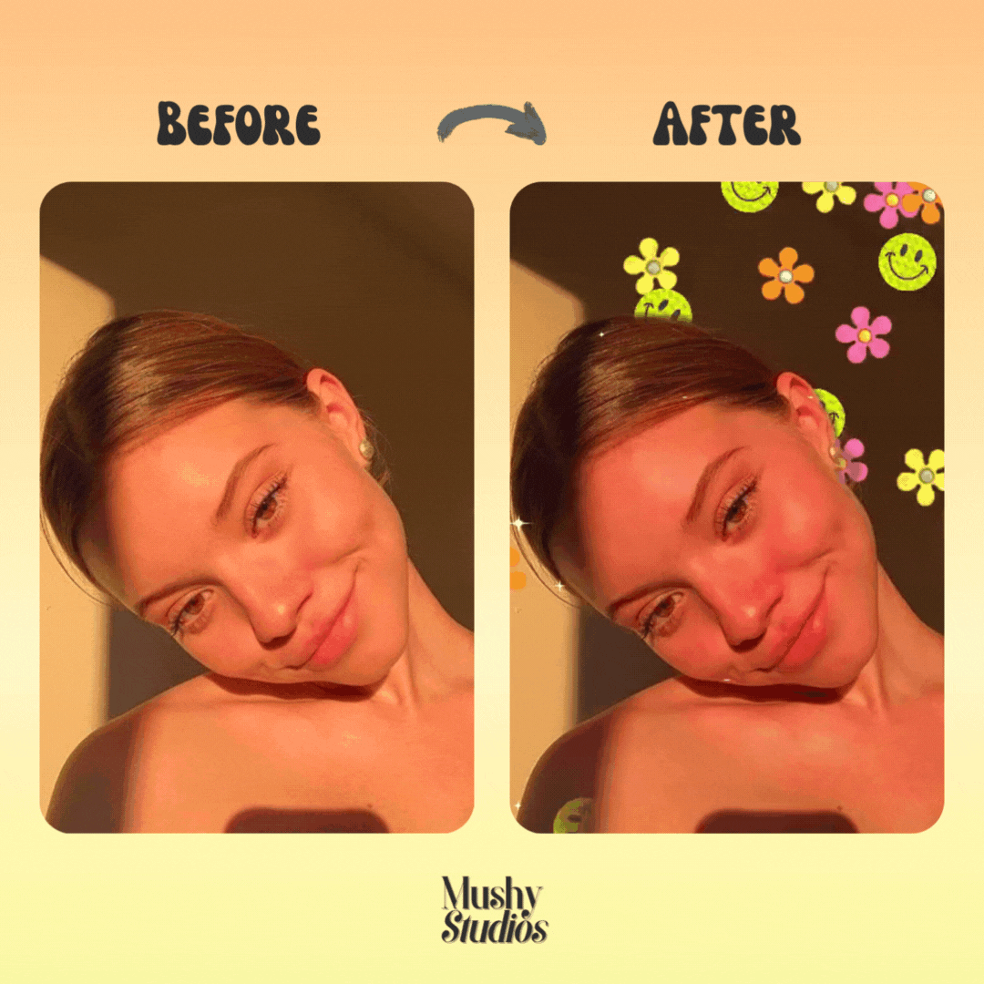 ♡ Filter with Y2K inspired flowers and smiley face emitter + background segmentation.
